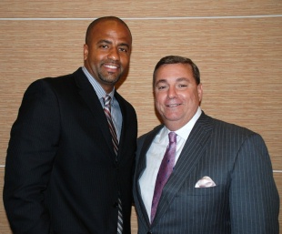 President and CEO of Choice Hotels Stephen Joyce (right) with Brian Parker, vice president of emerging markets and new business development at Choice’s annual convention in Boston in May.